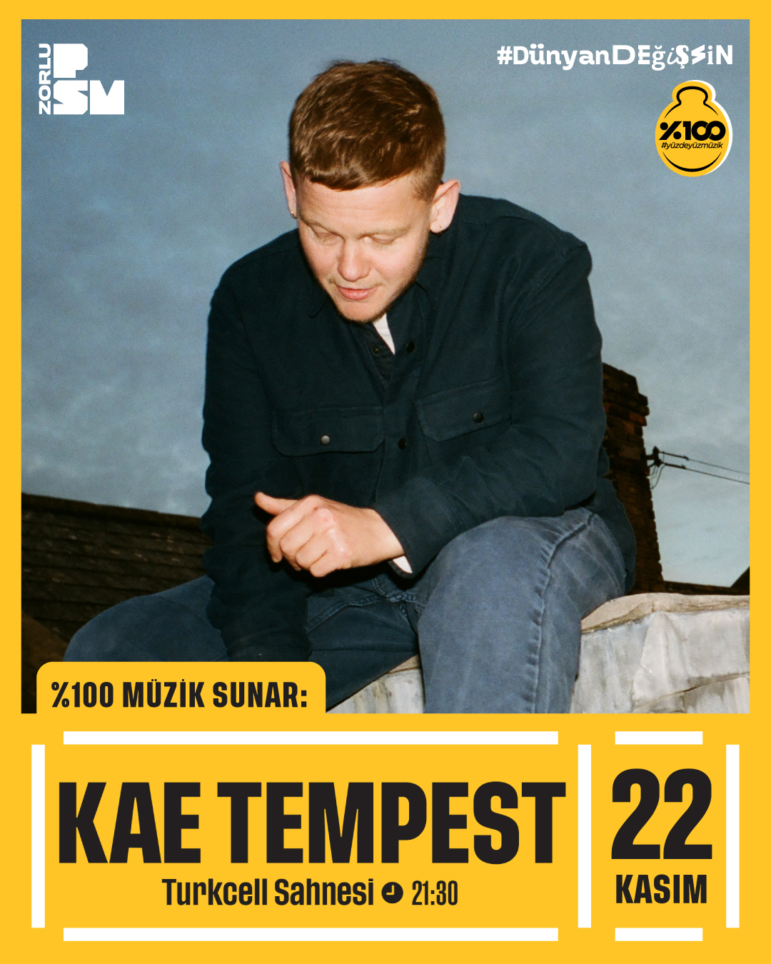 Spoken word’un çağdaş yıldızı, şair, müzisyen ve yazar Kae Tempest, 22 Kasım’da %100 Müzik’in katkılarıyla Zorlu PSM'nin başrolünde. Dinleyenleriyle sahici, sarsıcı ve dönüştürücü bir bağ kurmaya hazırlanan Tempest’in performansı, Turkcell Sahnesi'ni şiirle titretecek.