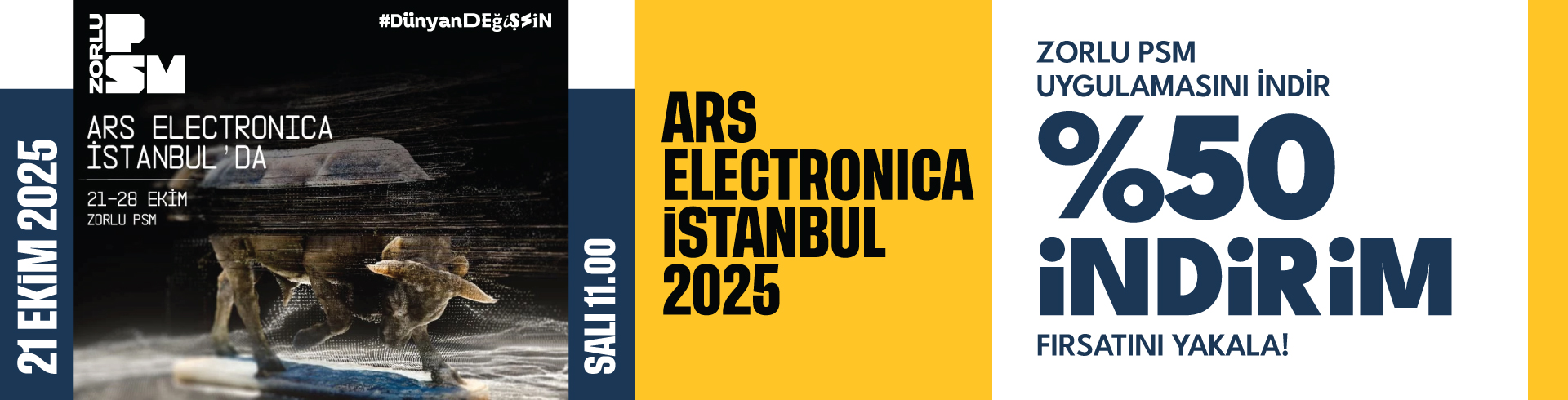 Zorlu PSM uygulamasını indir, kampanya kodunu aktive et ve 21 Ekim Salı günü Zorlu PSM'de gerçekleşecek olan Ars Electronica İstanbul için %50 indirim fırsatını yakala!