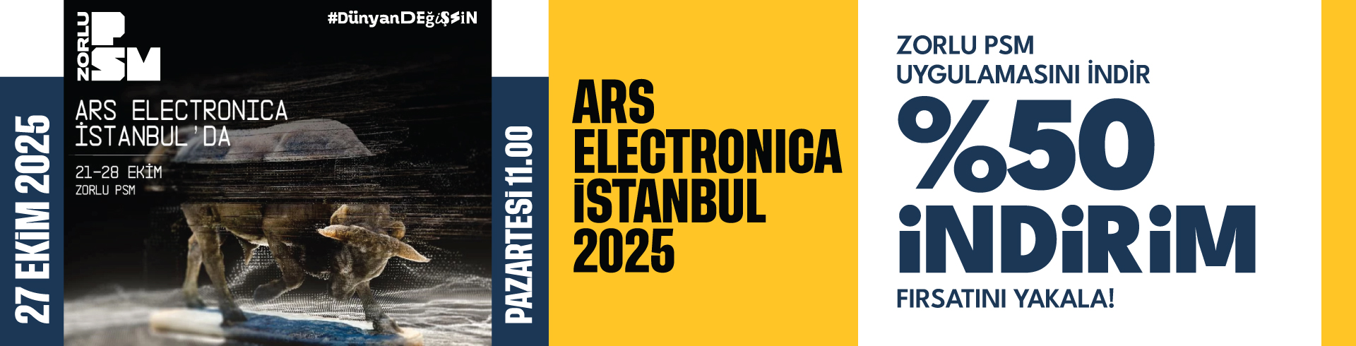 Zorlu PSM uygulamasını indir, kampanya kodunu aktive et ve 27 Ekim Pazartesi günü Zorlu PSM'de gerçekleşecek olan Ars Electronica İstanbul için %50 indirim fırsatını yakala!