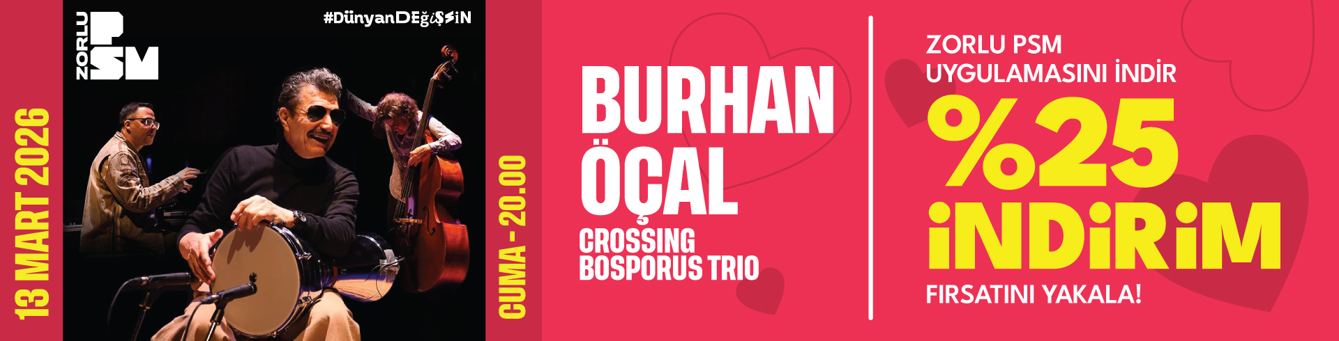 Kampanya kodunu aktive et ve 13 Mart Cuma günü Turkcell Platinum Sahnesi'nde gerçekleşecek olan Burhan Öçal - Crossing Bosporus konseri için %25 indirim fırsatını yakala!