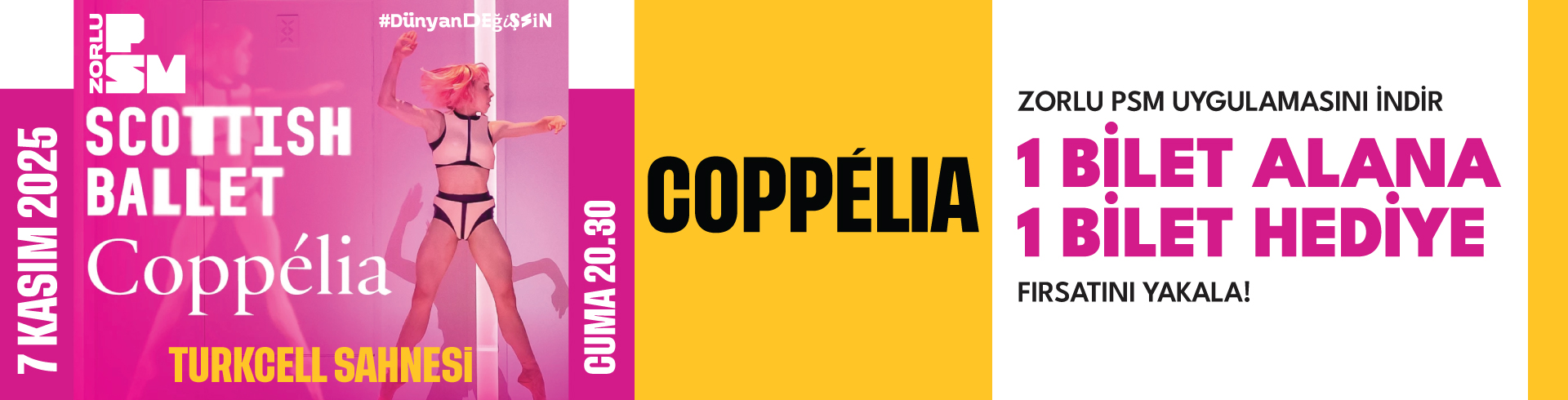 Zorlu PSM uygulamasını indir, kampanya kodunu aktive et ve 7 Kasım Cuma saat 20:30'da Turkcell Sahnesi'nde gerçekleşecek olan Coppélia için 1+1 fırsatını yakala!