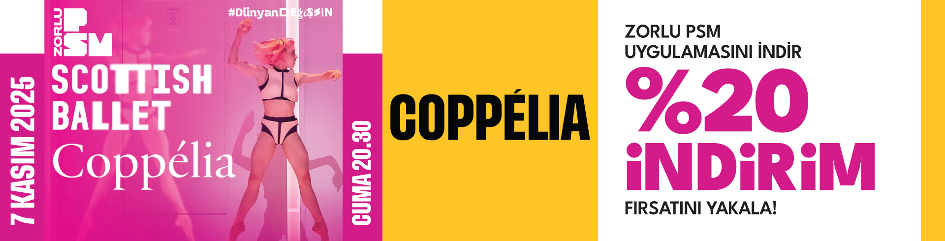 Zorlu PSM uygulamasını indir, kampanya kodunu aktive et ve 7 Kasım Cuma günü Zorlu PSM'de gerçekleşecek olan Coppélia için %20 indirim fırsatını yakala!