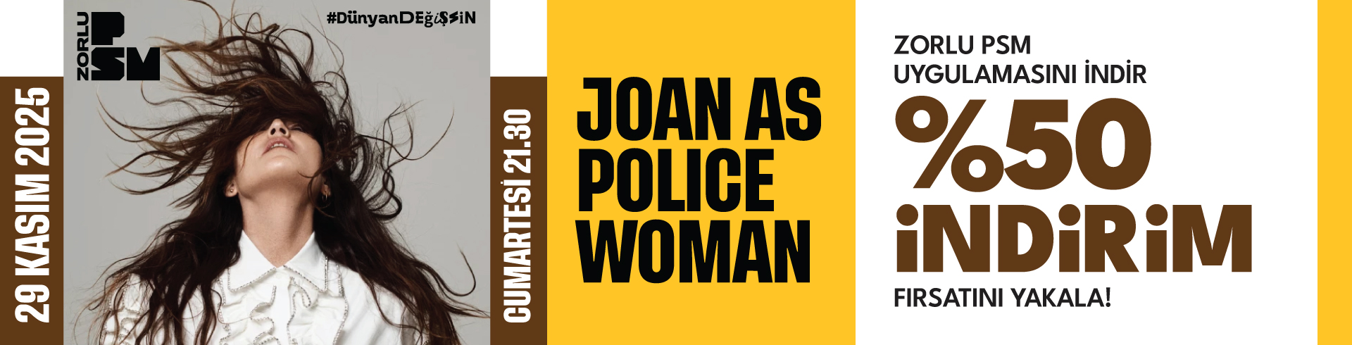 Zorlu PSM uygulamasını indir, kampanya kodunu aktive et ve 29 Kasım Cumartesi günü %100 Studio'da gerçekleşecek olan Joan as Police Woman konseri için %50 indirim fırsatını yakala!