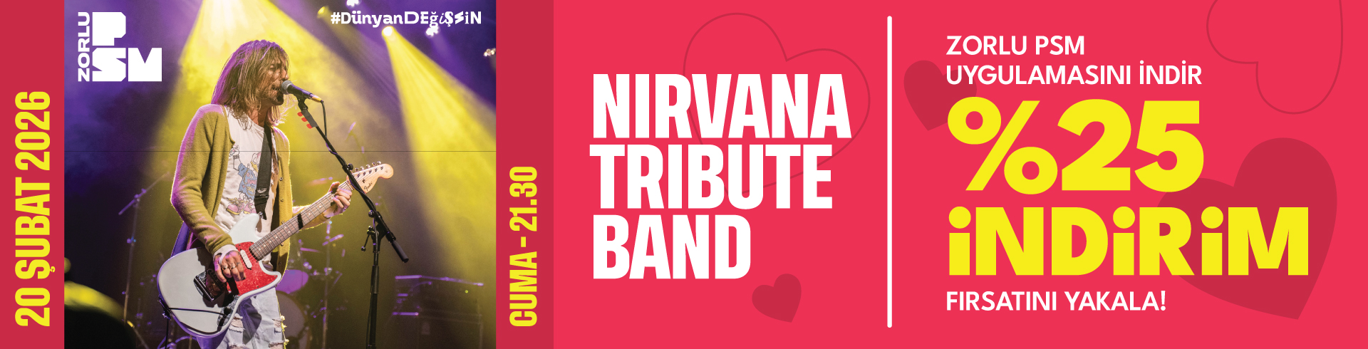 Kampanya kodunu aktive et ve 20 Şubat Cuma günü %100 Studio'da gerçekleşecek olan Nirvana Tribute Band konseri için %25 indirim fırsatını yakala!