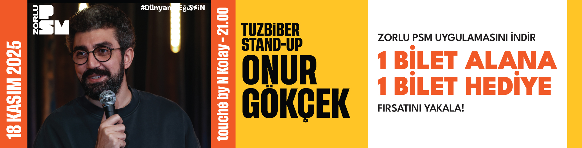 Zorlu PSM uygulamasını indir, kampanya kodunu aktive et ve 18 Kasım Salı günü touché by N Kolay'da gerçekleşecek olan TuzBiber Stand-Up: Onur Gökçek gösterisi için 1+1 fırsatını yakala!