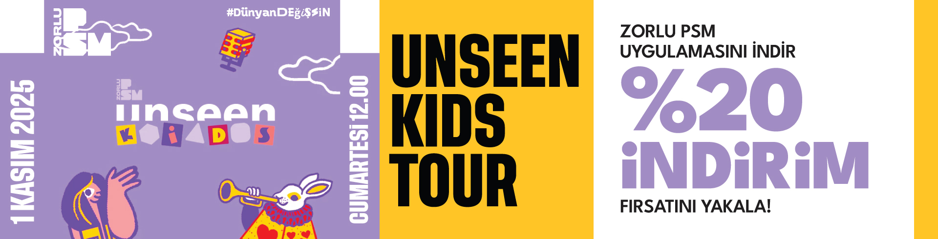 Zorlu PSM uygulamasını indir, kampanya kodunu aktive et ve 1 Kasım Cumartesi günü Zorlu PSM'de gerçekleşecek olan Unseen Kids Tour için %20 indirim fırsatını yakala!