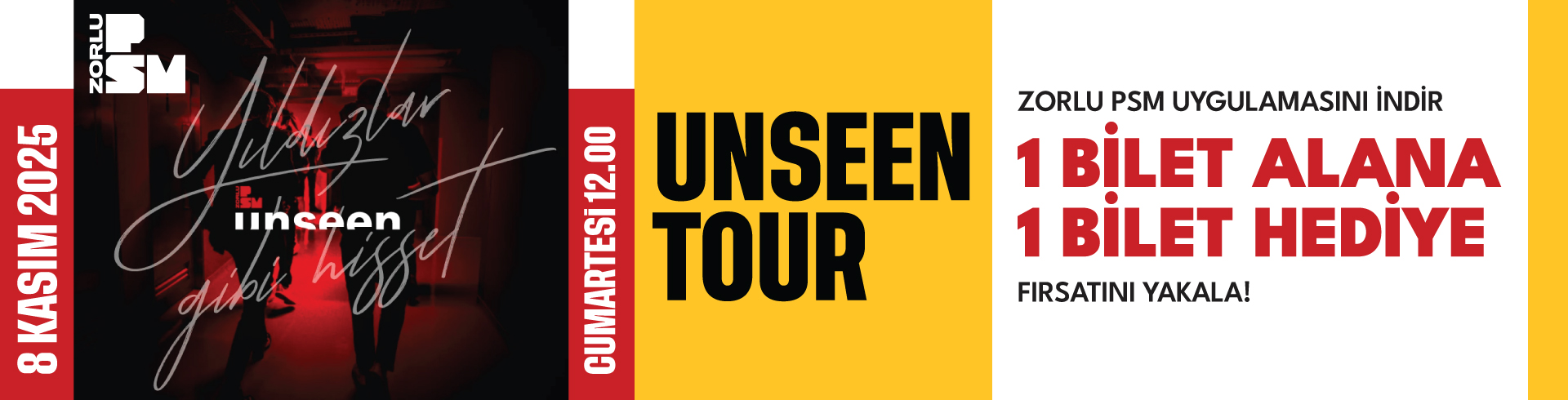 Zorlu PSM uygulamasını indir, kampanya kodunu aktive et ve 8 Kasım Cumartesi günü Zorlu PSM'de gerçekleşecek olan Unseen Tour için 1+1 fırsatını yakala!