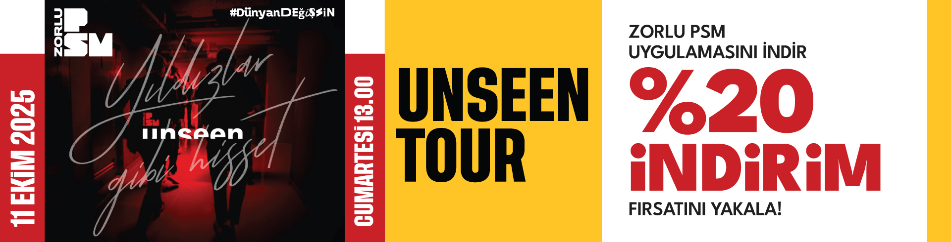Zorlu PSM uygulamasını indir, kampanya kodunu aktive et ve 11 Ekim Cumartesi günü Zorlu PSM'de gerçekleşecek olan Unseen Tour için %20 indirim fırsatını yakala!